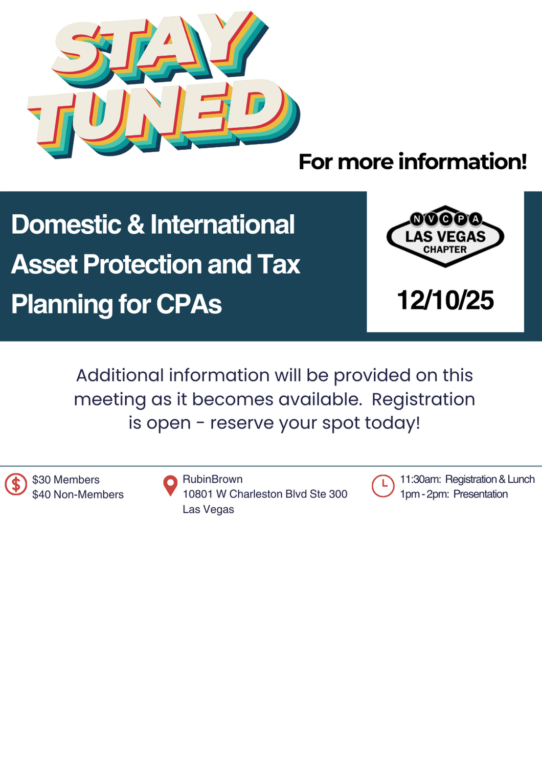 December 2025 Las Vegas Chapter Meeting: Domestic & International Asset Protection and Tax Planning for CPAs